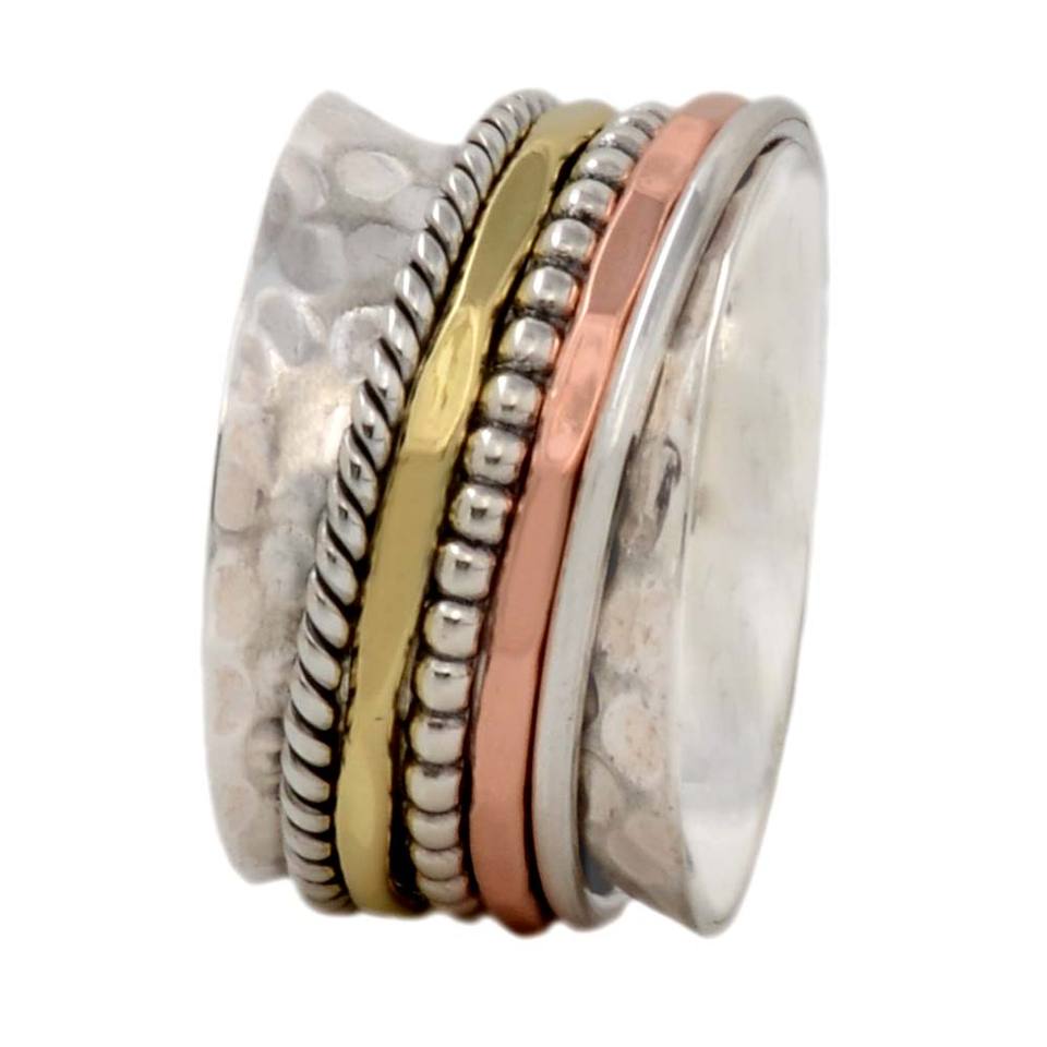 925 Sterling Silver Unique 3-Tone Bezel Setting High Polish Spinner Ring Fine Jewelry Golden Brass Wedding Occasion Factory