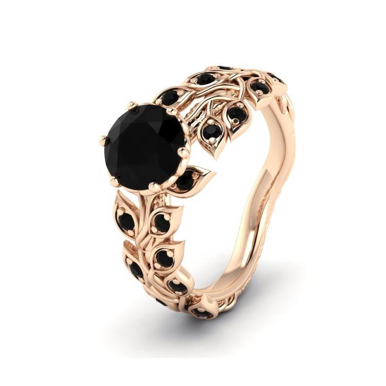 925 Sterling Silver Unique Black Onyx Leaf Branch Engagement Gemstone Ring From Supplier at Wholesale Prices