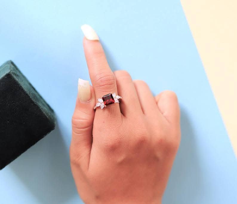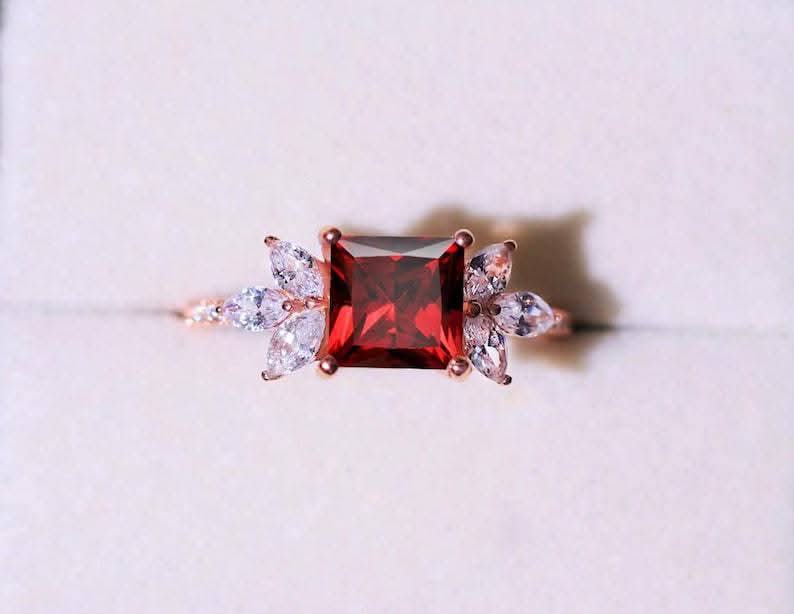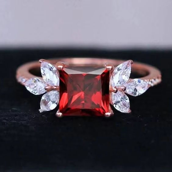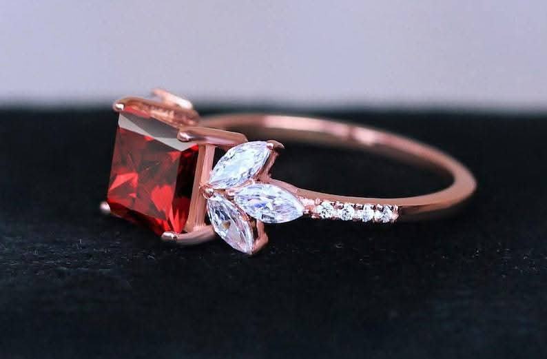 925 Sterling Silver Unique Red Rose Moissanite Diamond Engagement Ring Stylish Prince Cut Grant Design Stylish Valentine's Day