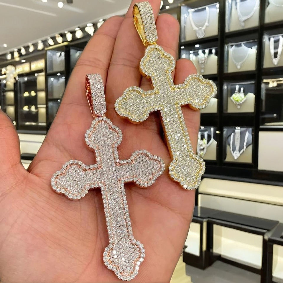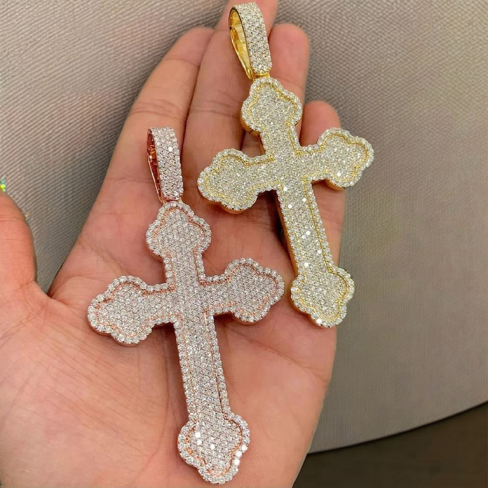 Wholesale Trendy 925 Silver Custom Big Jesus Cross Necklace Rhodium Plated Christian Religious Lab Grown Diamond Pendants Charms