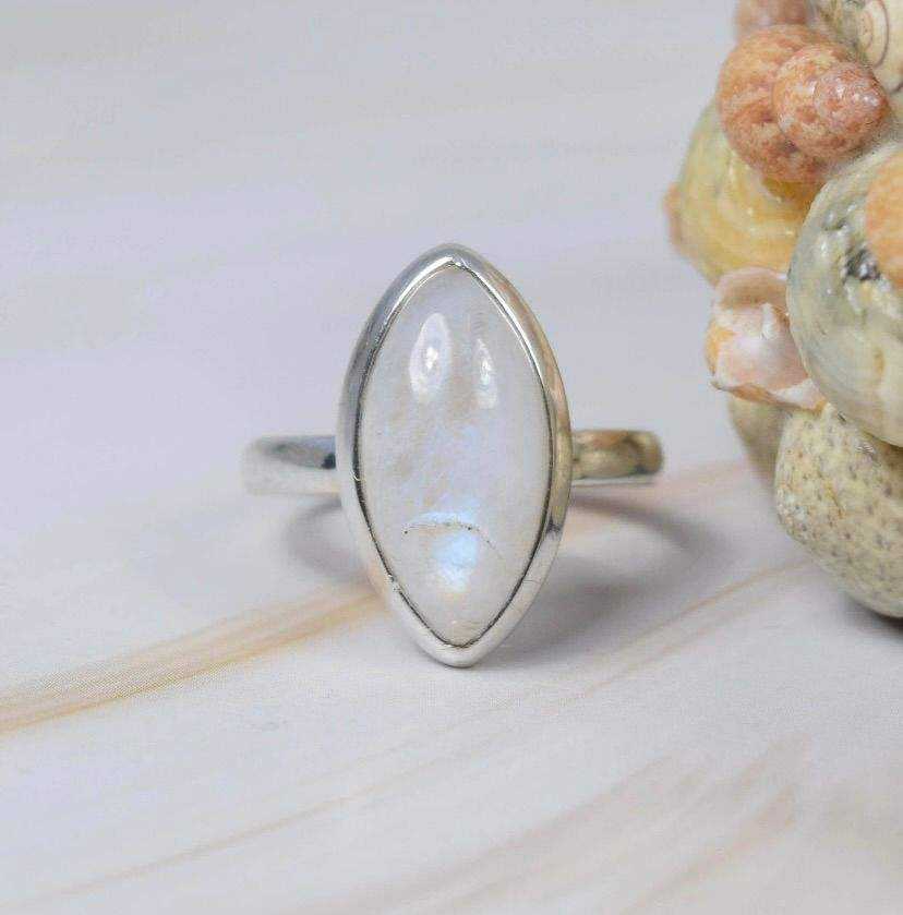 925 Sterling Silver Unisex Statement Ring Rose Cut Natural Moonstone Gemstone Diamond Tension Setting Vintage IGI Certified
