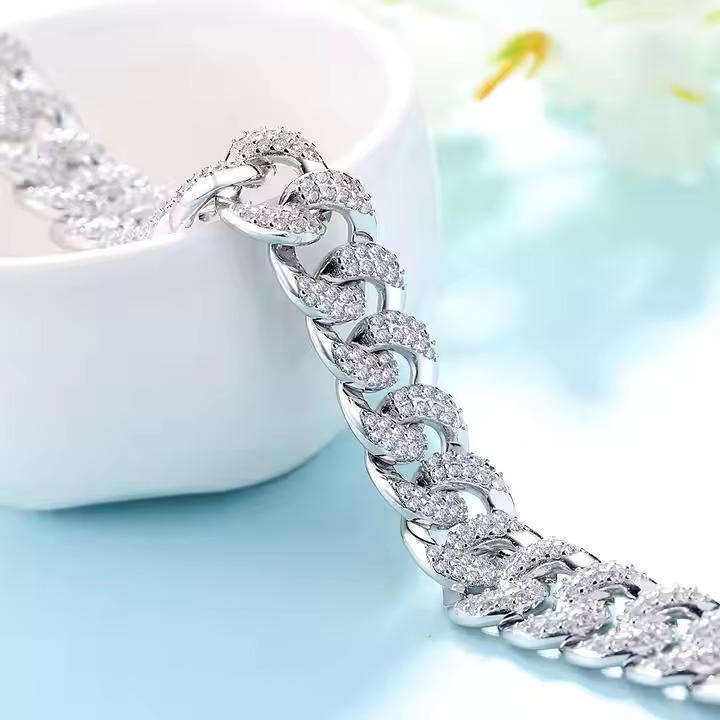 925 Sterling Silver VVS Clarity Moissanite Round Brilliant Cut Diamond With for New Fashion Cuban Bracelet for Men