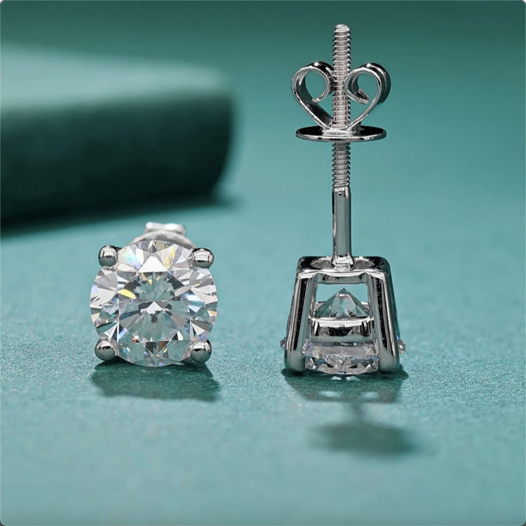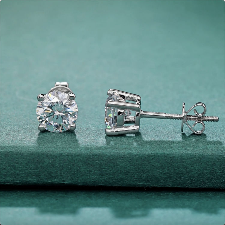 925 Sterling Silver VVS Moissanite Diamond Stud Earrings Classic Luxury Screw Back with Gold Plating Flower Shape for Men Women