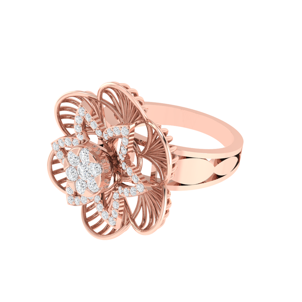 925 Sterling Silver VVS Moissanite Floral Ring Round Brilliant Cut Diamond Shapes Rhodium Plated Dainty Style Fine for Gift