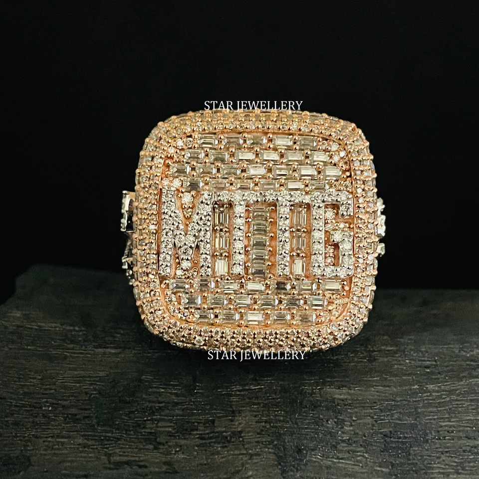 925 Sterling Silver VVS VS Iced Out Moissanite Baguette Championship Ring