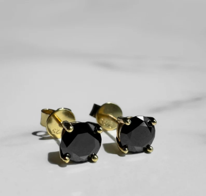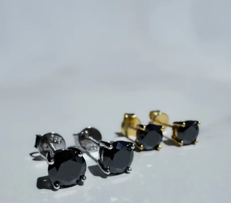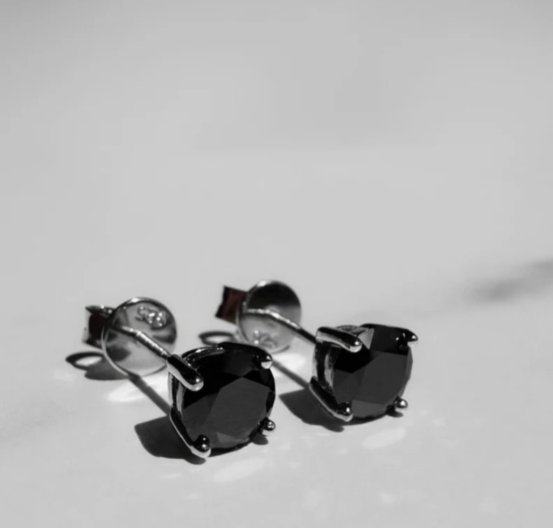 925 Sterling Silver VVS1 Moissanite Black Stud Earrings: Diamond Alternative Solid Sterling Silver Waterproof Jewellery