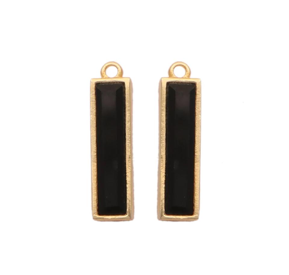 925 Sterling Silver Vintage Earrings with Black Onyx Gemstone Bar Shape Single Bail Gold Stone Bezel Jewelry Finding Supplies