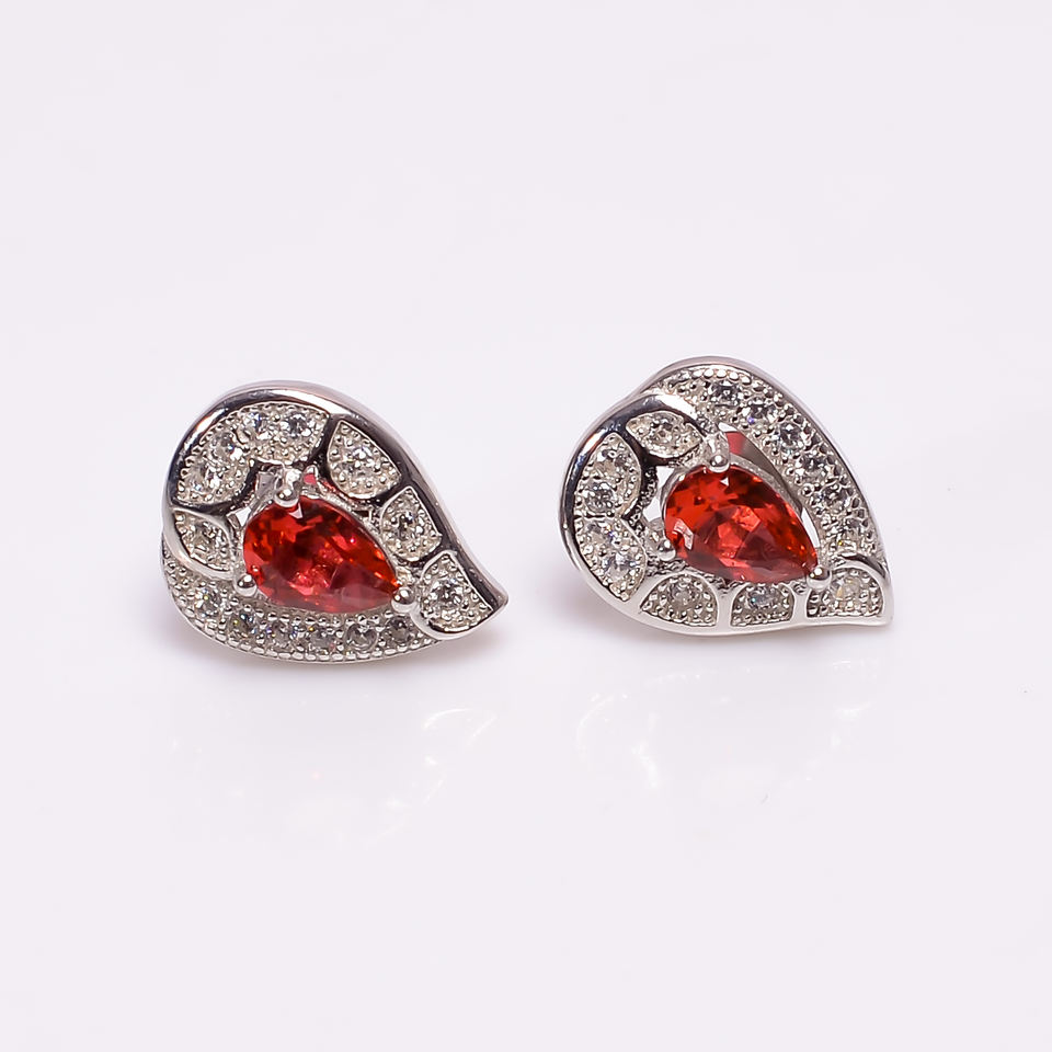 925 Sterling Silver Vintage Pink Tourmaline Micro Pave Cunic Zircon Stud Earrings Women's Gift for Weddings and Anniversaries