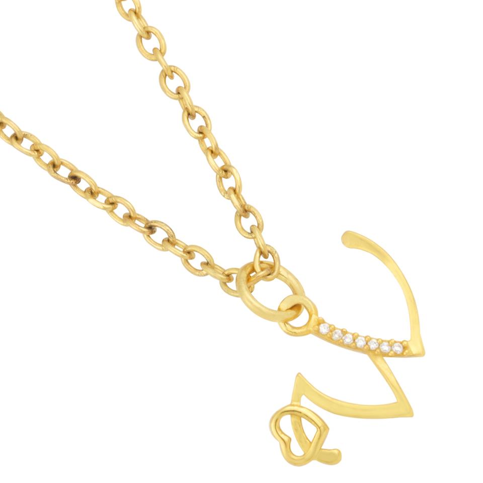 925 Sterling Silver 'W' Initial Pendant Charm Necklace White CZ Accent Gold Plated
