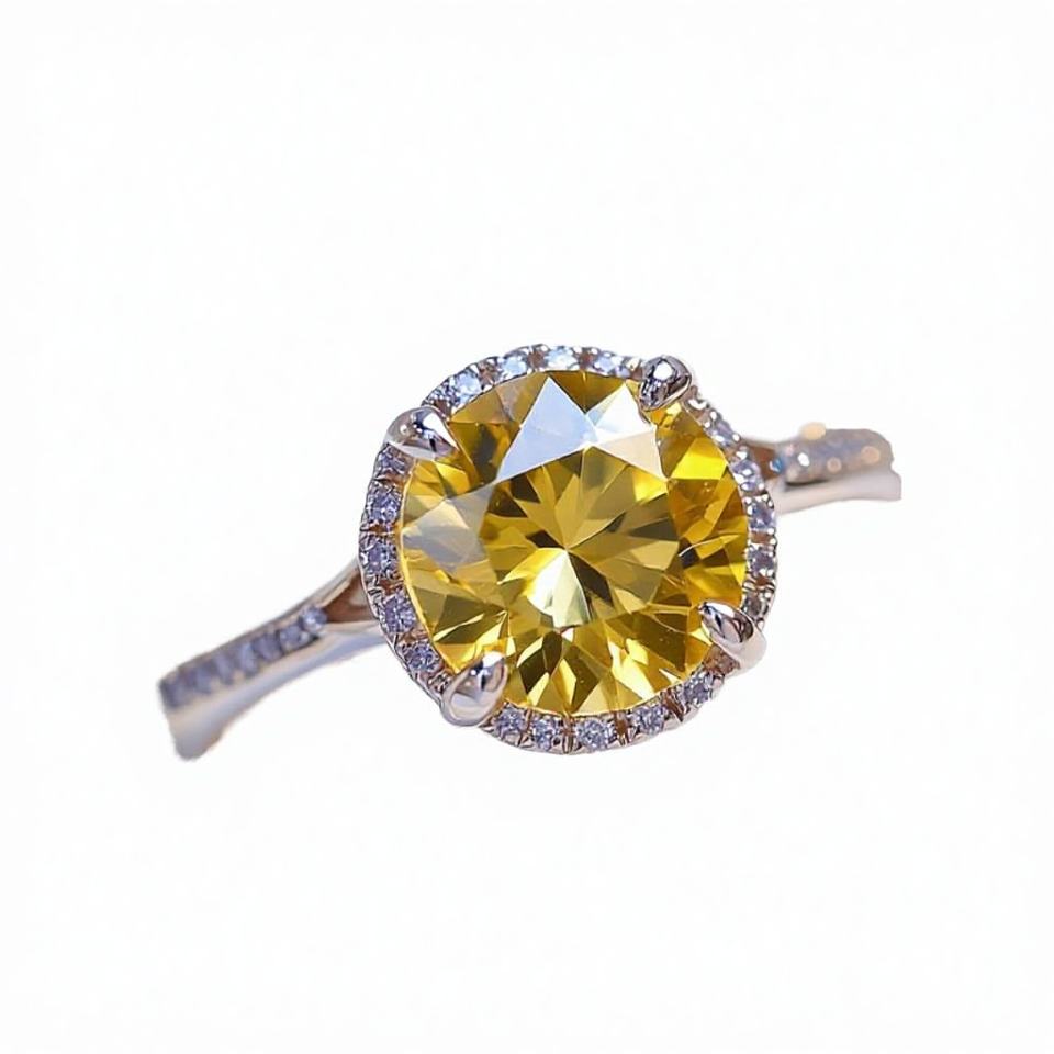 925 Sterling Silver Classic Wedding Ring Droplet Yellow Zircon Set IGI Certified Personalized Party Versatile