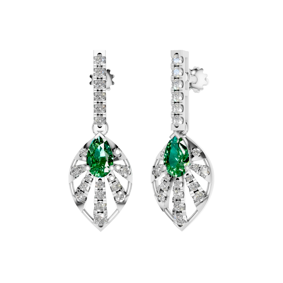 Style:Modern Drop Emerald Gemstone and Diamond Stud Earrings