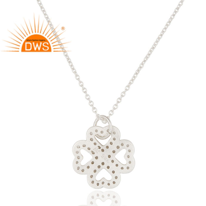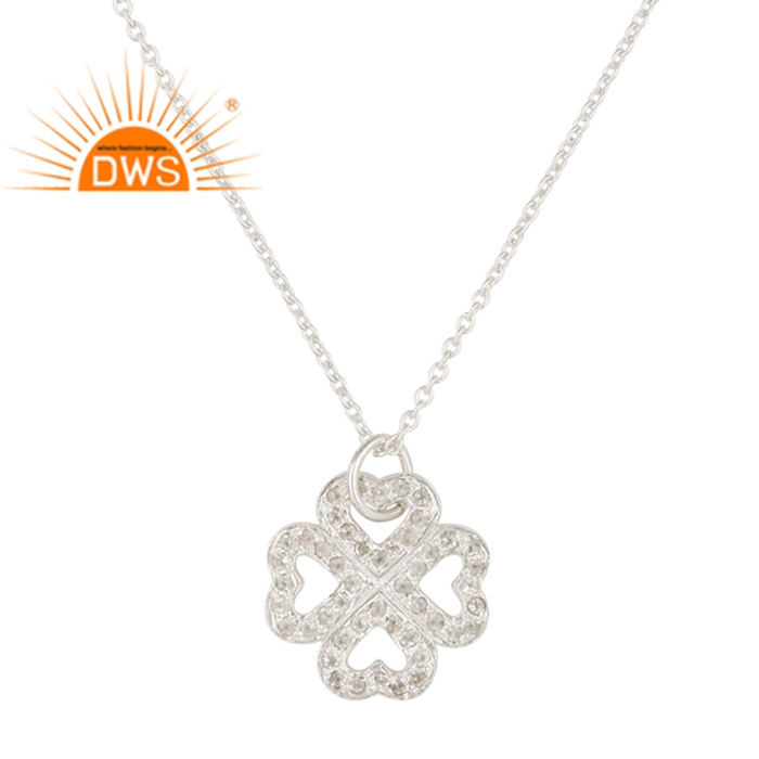 925 Sterling Silver White Topaz Heart Flower Designer Pendant Necklace Jewelry Classic Collection