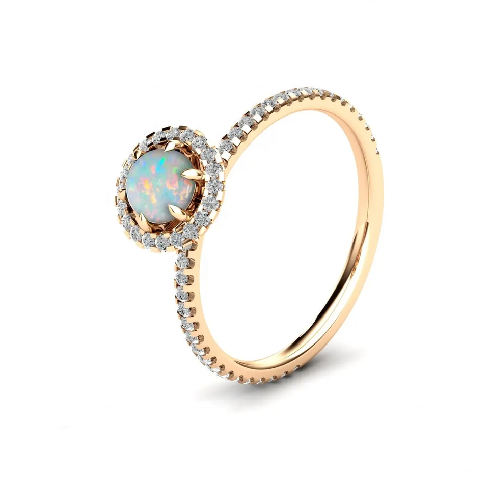 925 Sterling Silver White and Blue Fire Ethiopian Opal Semi Precious Loose Gemstone Ring Female Engagement Wedding Diamond Ring
