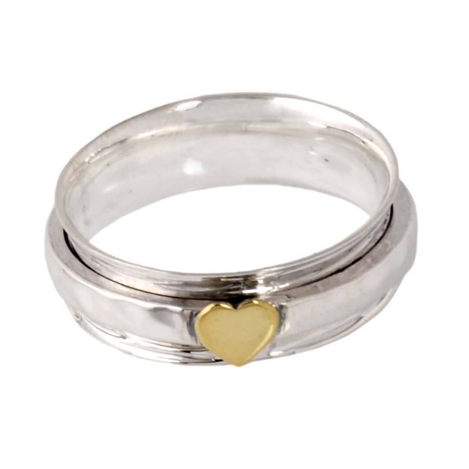 925 Sterling Silver Wide 3-Tone Heart Spinner Ring Handmade Statement Jewelry for Wedding Anniversary for Meditation Wholesale
