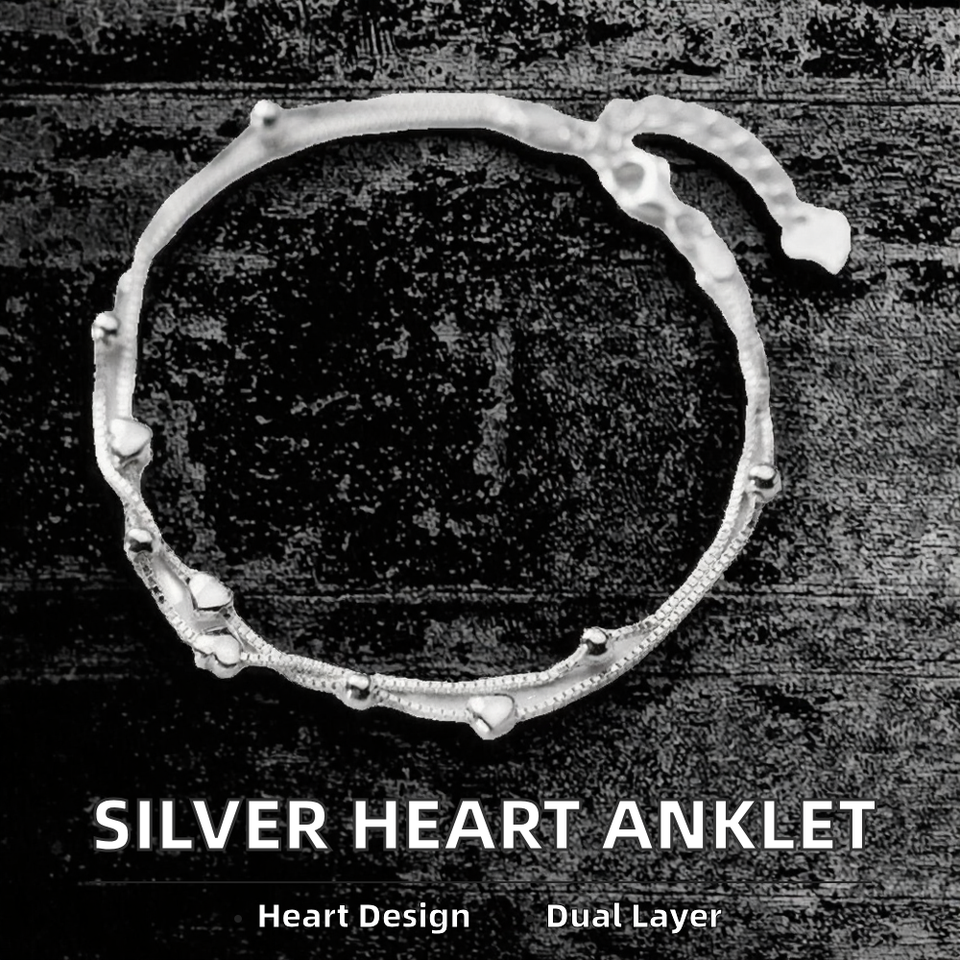 925 Sterling Silver Men's Body Jewelry Double Layer Box Chain Heart Shape Ethnic Anklet