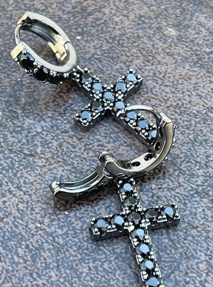 925 Sterling Silver Women's Black Oxidized Simulated Diamond Drop Dangle Cross Earrings Making for Women Fashion Jewelry