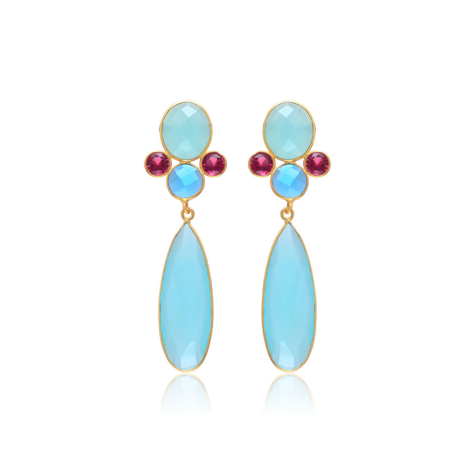 925 Sterling Silver Women's Fashion Earrings Beautiful Natural Blue Aqua Chalcedony Gemstone Gold Plated Drop Dangle Pearl