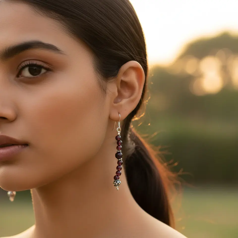 925 Sterling Silver Women's Garnet Bead Drop Earrings Fashion Jewelry