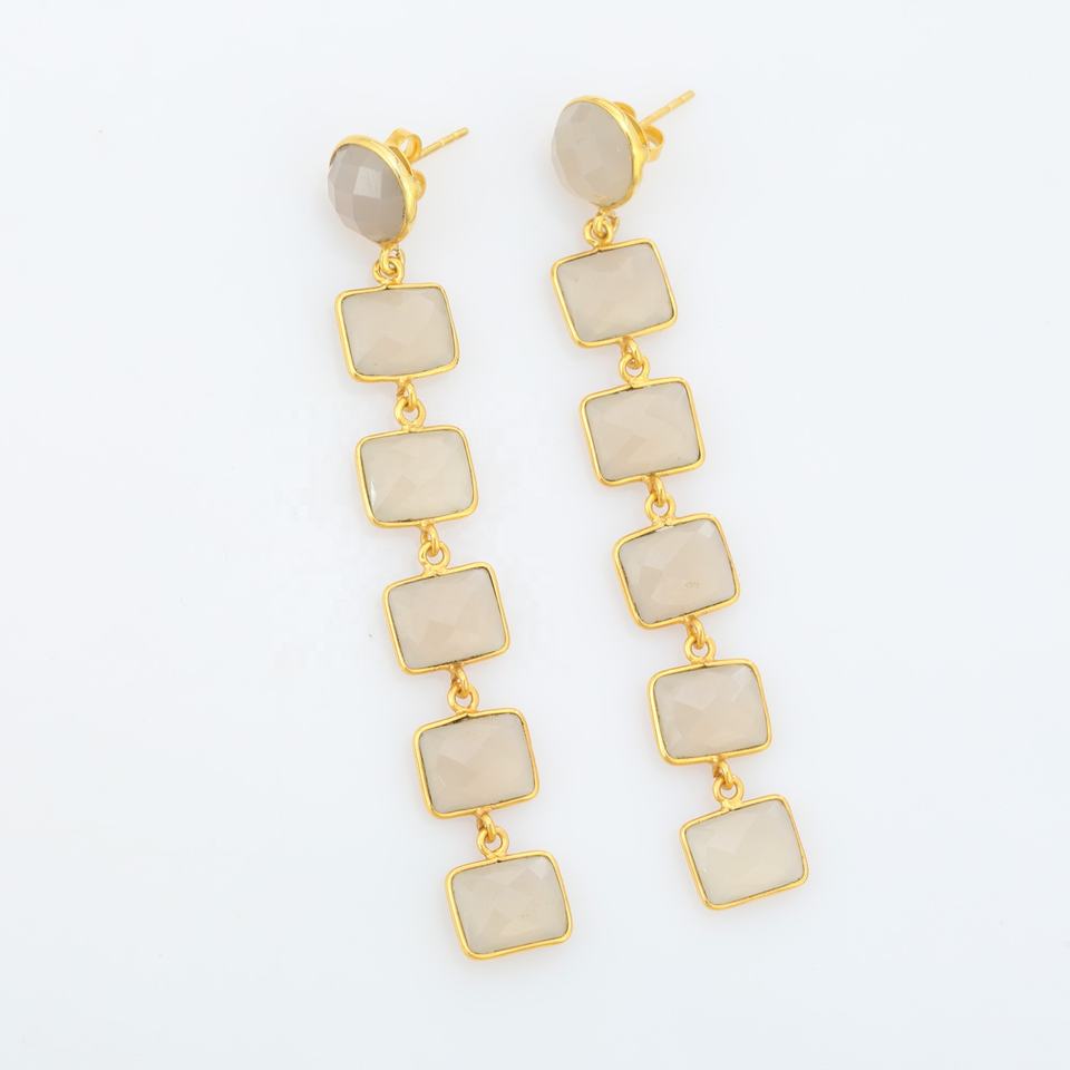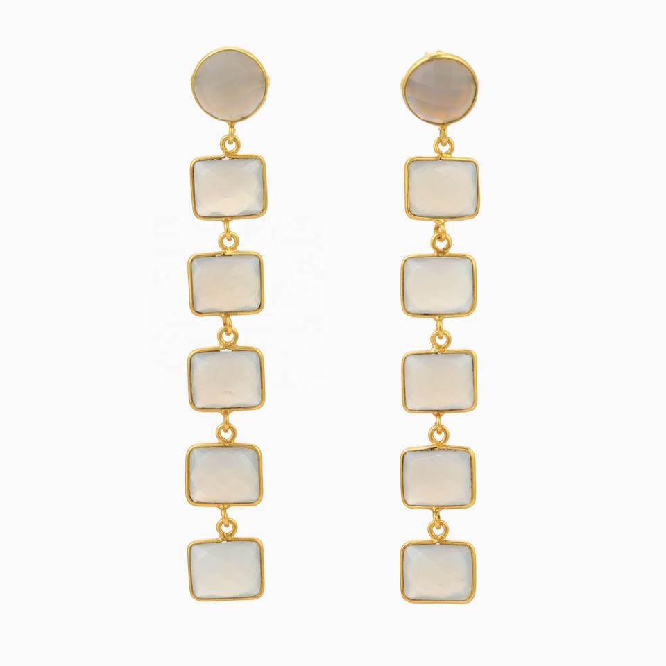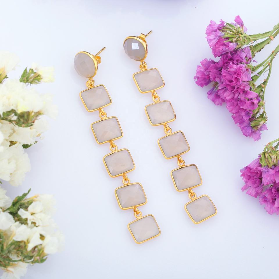 925 Sterling Silver Women's & Girls' Earrings Top Natural Gray Chalcedony Amazing Cute Design Long Drop Fashion for Gifts