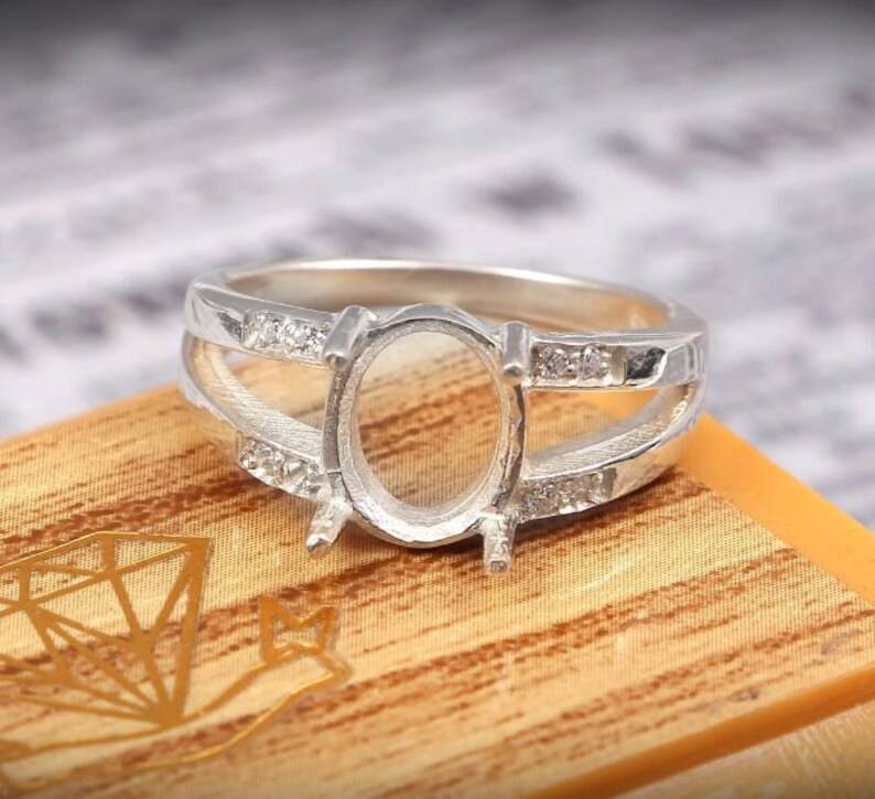 925 Sterling Silver Women's Handmade Ring 7x9mm Oval Prong Setting Filigree Design Semi-Mount Stone Jewelry Findings Components