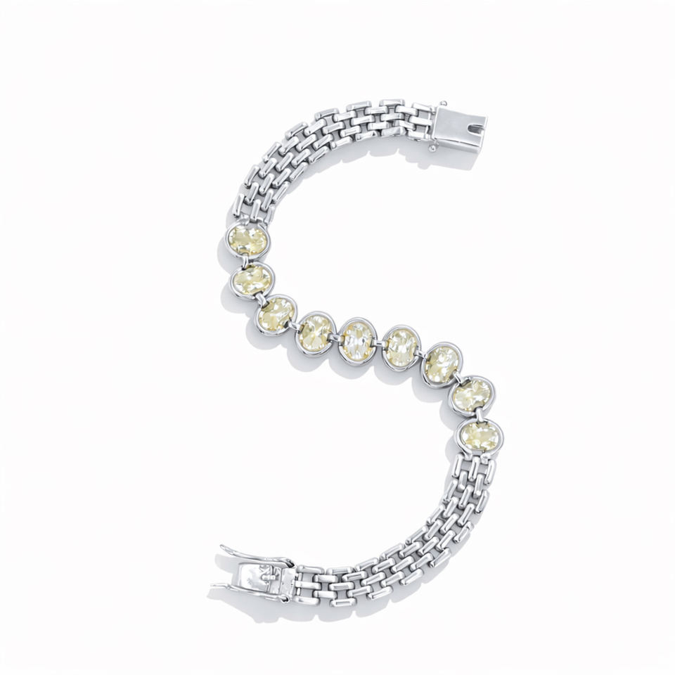 925 Sterling Silver Yellow Aquamarine Oval Stone Nine Stone Mesh Chain Luxury Certified Bracelet Gold & Rhodium Plated