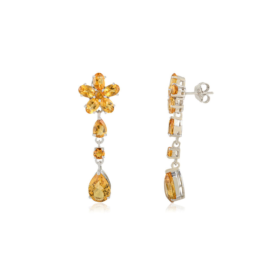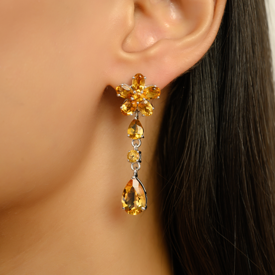 925 Sterling Silver Yellow Citrine Flower Long Drop Earrings Women Luxury Gemstone Dangle Jewelry Wholesale
