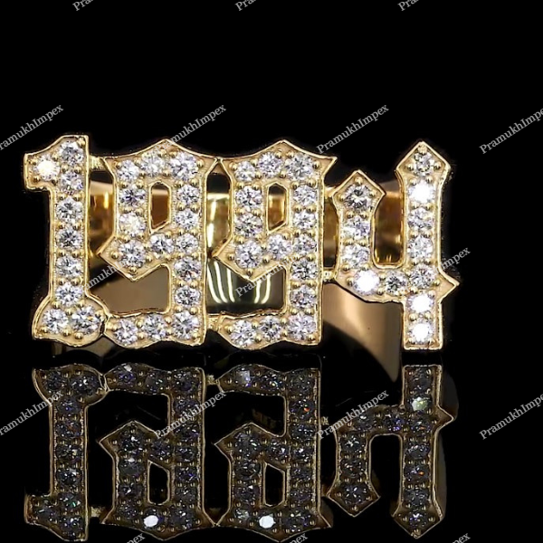 925 Sterling Silver Yellow Gold Plated Moissanite Ice Out Hip Hop Personalized Latest Design 1994 Number Ring At Wholesale Price
