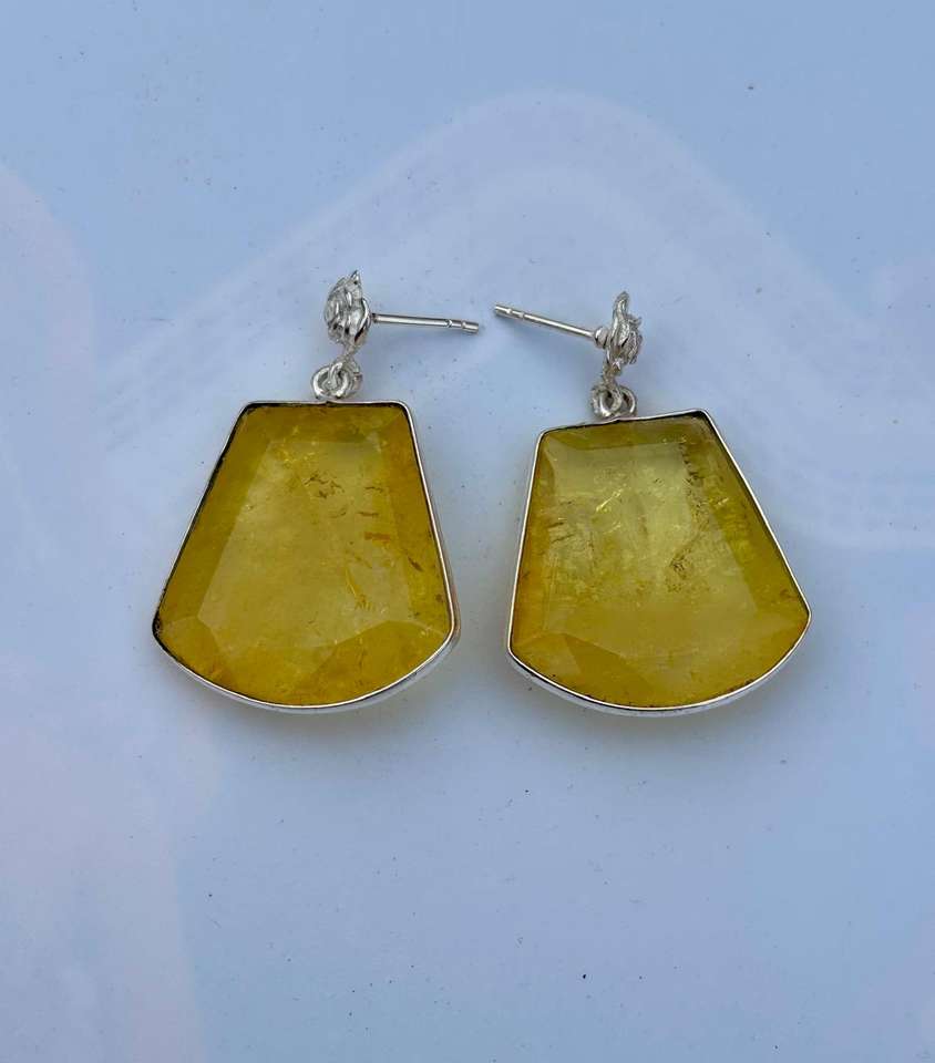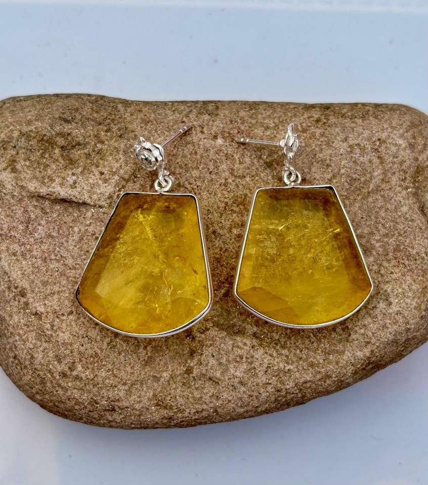925 Sterling Silver Yellow Sapphire Earring , Women Beautiful Earring .