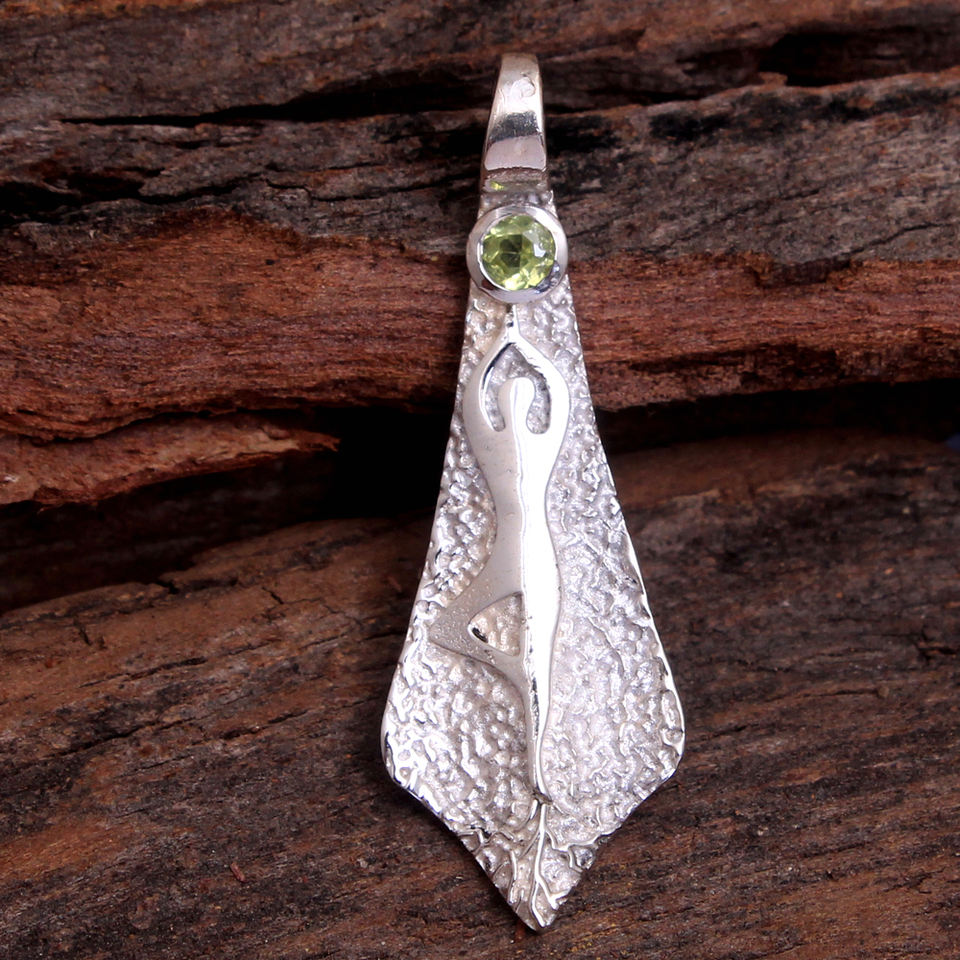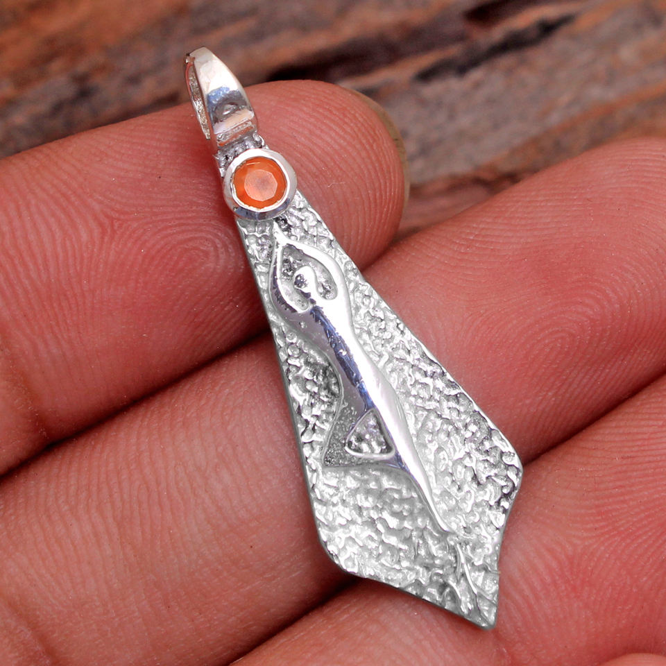 925 Sterling Silver Yoga Pendant Carnelian Peridot Gemstone Silver Pendant Handmade Unisex Jewelry Silver Jewelry