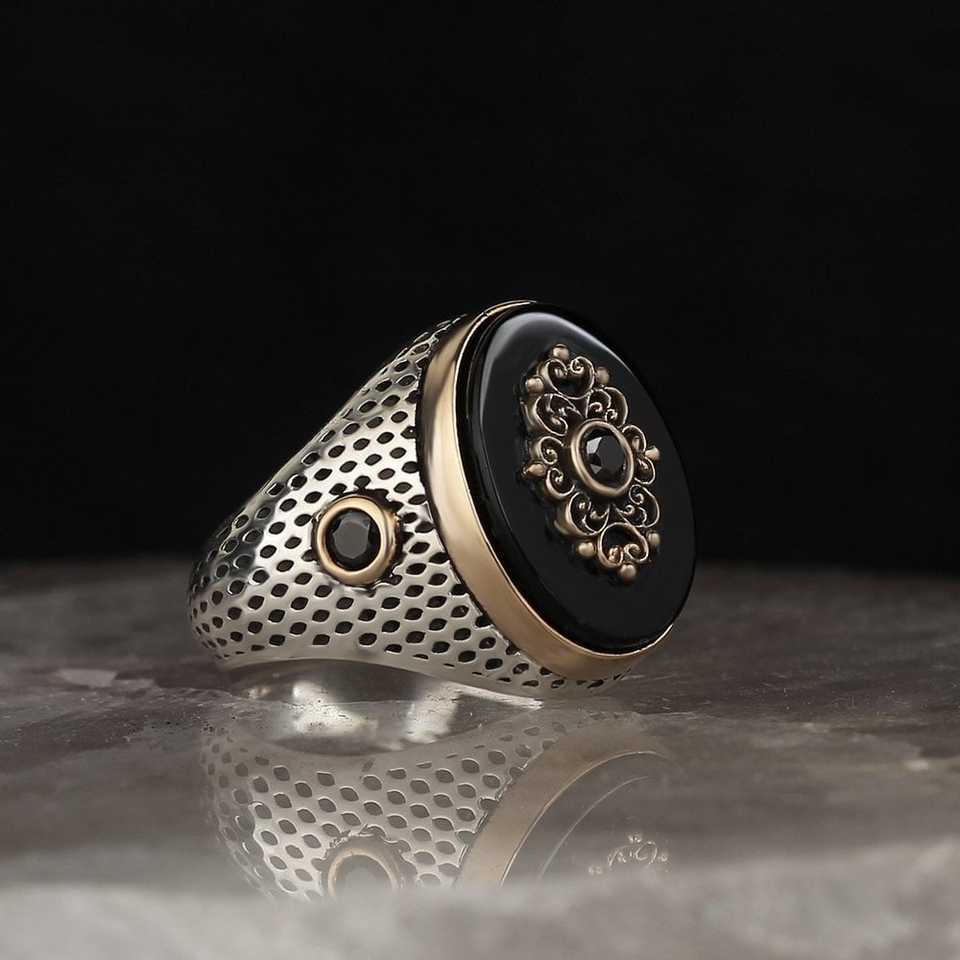 925 Sterling Silver Zircon Stone Traditional Motif Turkish Men Ring Turkish Wholesale Silver Jewelry Turkish Handmade Men Ring