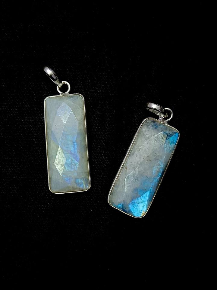 925 Sterling Silver Natural Rainbow Moonstone Pendant