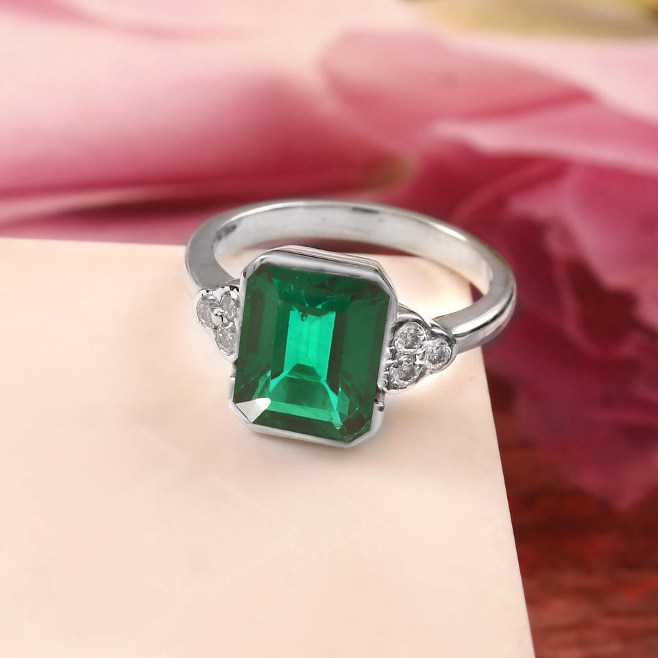 925 Sterling Silver with Lab-Grown Emerald Fine ring Synthetic Lab-Grown Emerald Ring Synthetic Emerald Ring