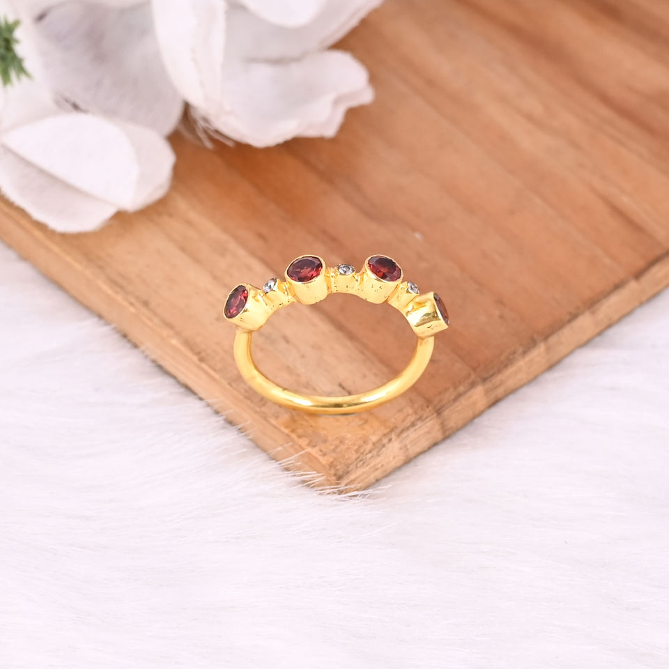 925 Sterling Solid Silver Natural Garnet Gemstone Yellow Gold Plated Wedding Engagement Ring eternity Band Jewelry Women Gifts