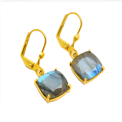 925 Sterling silver faceted labradorite gemstone gold plated clip-on earrings handmade jewelry Fashionable Earring For Women