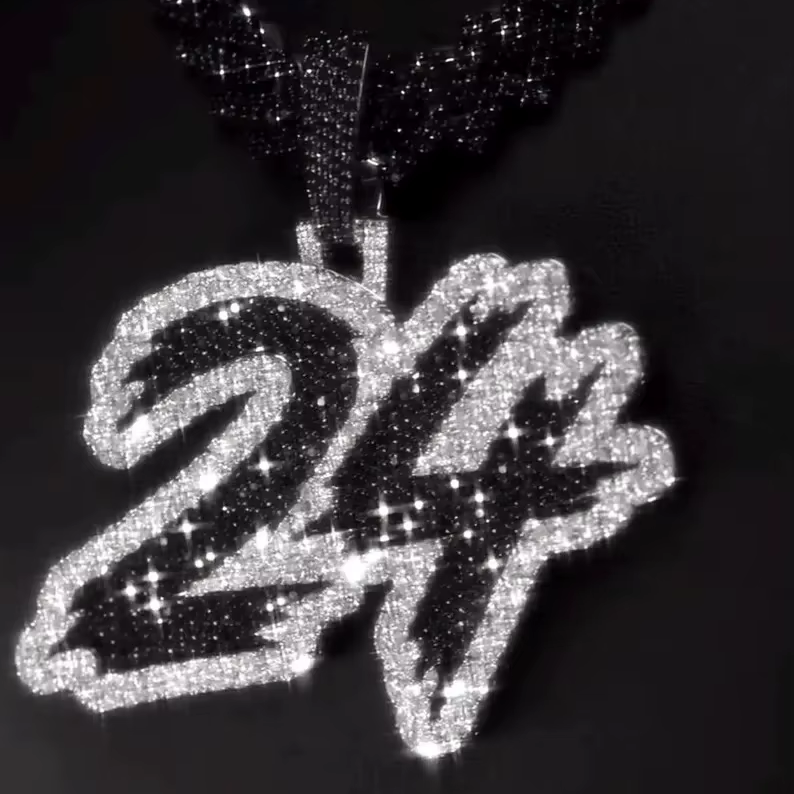 925 Sterling silver moissanite Black & White Chunky Moissanite Custom Iced Out Number Pendant Hip Hop Jewelry