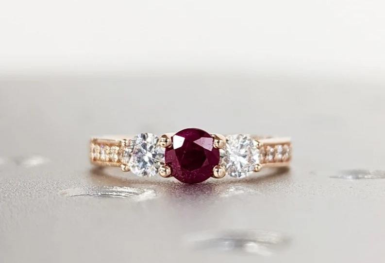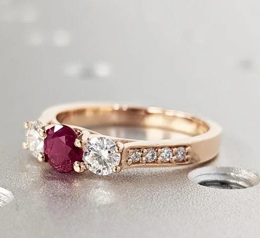 925 Strling Silver Red Ruby Engagement Ring Round Cut Gems Diamond Wedding Band, 3 Stone Unique Women Bridal Promise Ring