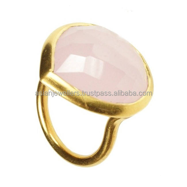 925 sterling silver Pink Chalcedony Gemstone Gold vermeil Ring