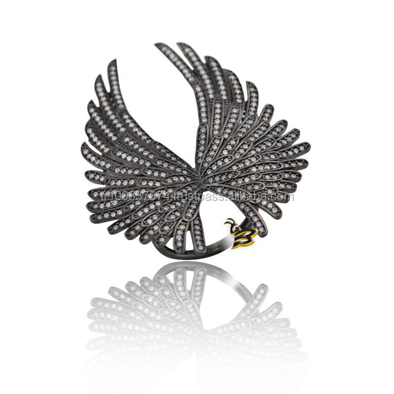 925K Sterling Silver the Best Art Design Newest Black Angel Wings Ring