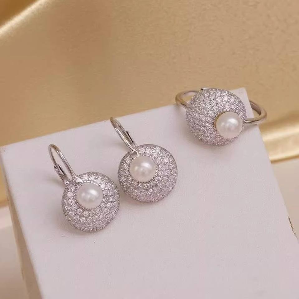 9363DIY S925 Silver Crystal Earrings Set Empty Holder with Concealer Ring Fashionable DIY Pearl Accessories