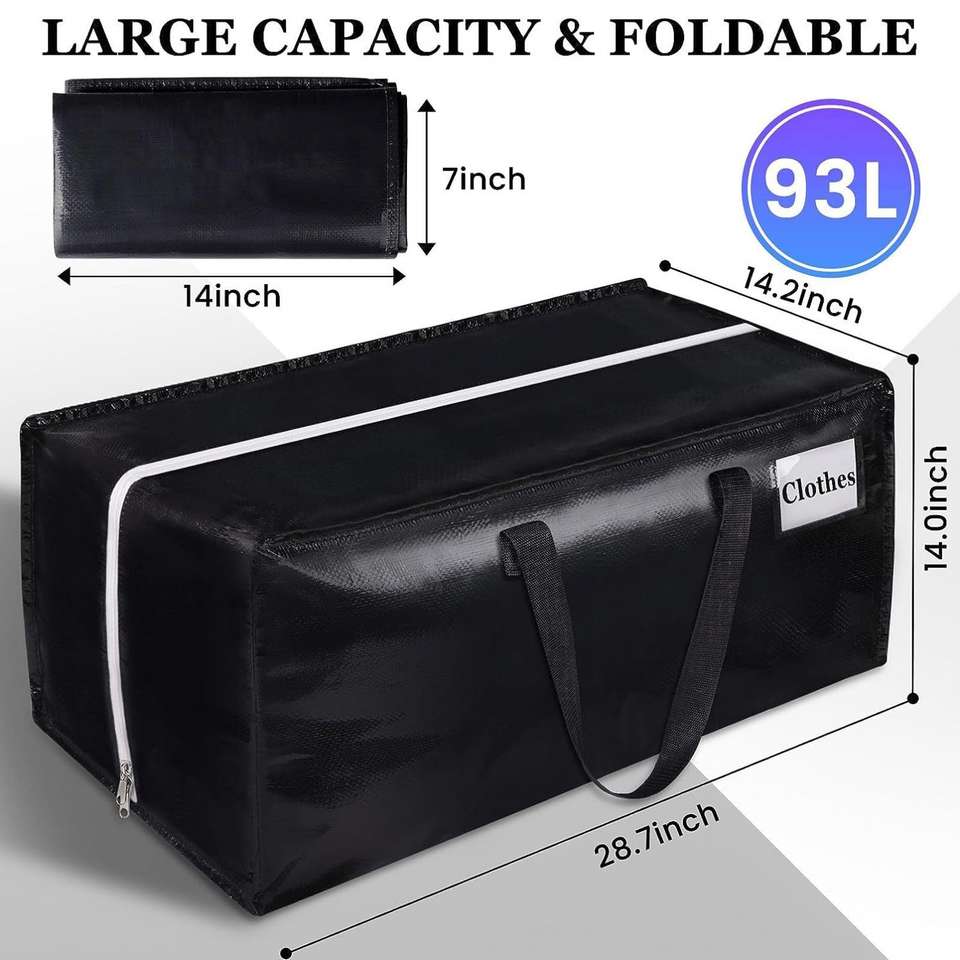 93L Extra Large Storage Tote Oversized Boxes Strong Handles Zippers Space Saving Collapsible Reusable Moving Bags