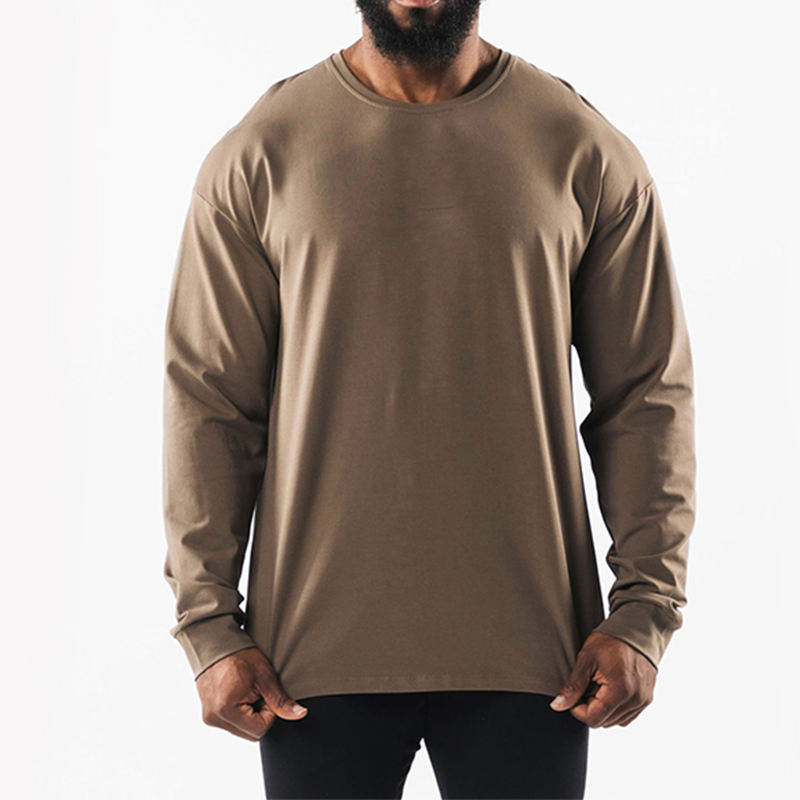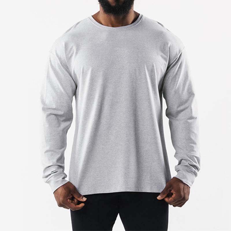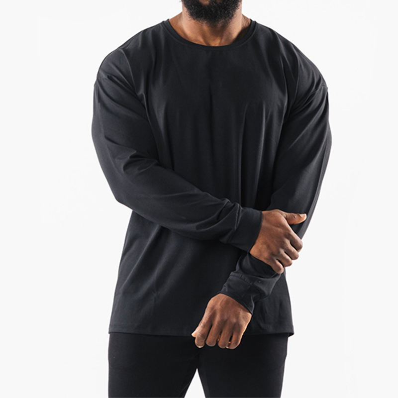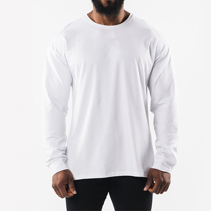 95 Cotton 5 Spandex Quick Dry Fit Gym Tshirt High Quality Long Sleeve Sports Oversize Mock Neck Screen Print T-shirt for men