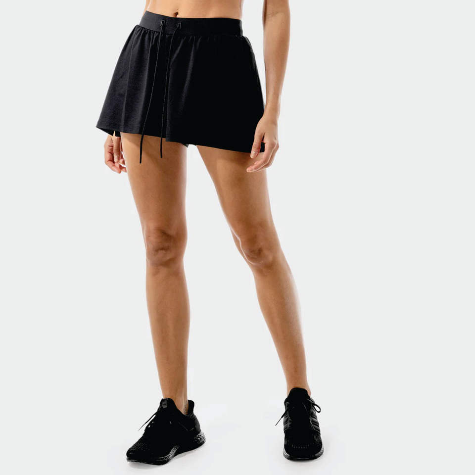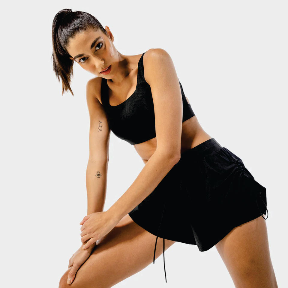 96% Nylon 4% Spandex True Fit High Waisted Women Onyx Flux 2 in 1 Shorts with Hidden Pocket in the Lining Layer