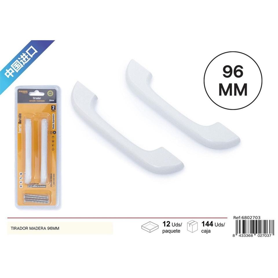 96mm Wooden Handle, 2 pcs, White - Furniture Clearance