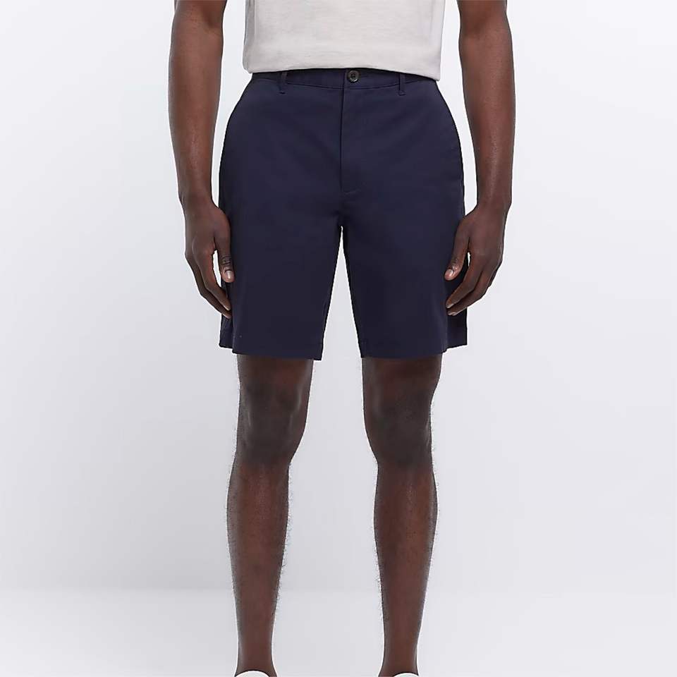 98% Cotton 2% Elastane Navy Slim Fit Chino Shorts with Side Slip Pockets Belt Loops Button and Zip Fastening Solid Pattern
