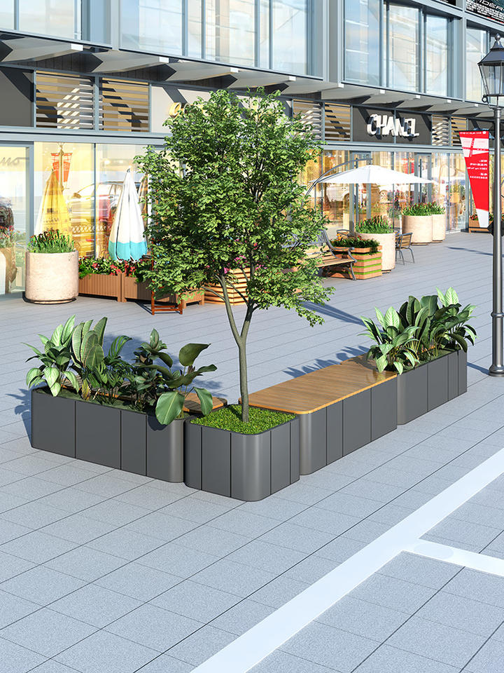 982M Outdoor Stainless Steel Tree Planter Bench Seat Flowerpot Tree Landscape Garden Street square Mall Waiting Leisure Chairs
