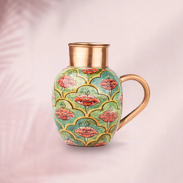 99.11 Pure Copper Water Jug Red Flower Style Stocked Pitcher for Wedding Occasions Several Uses Includes Lid Export Ready