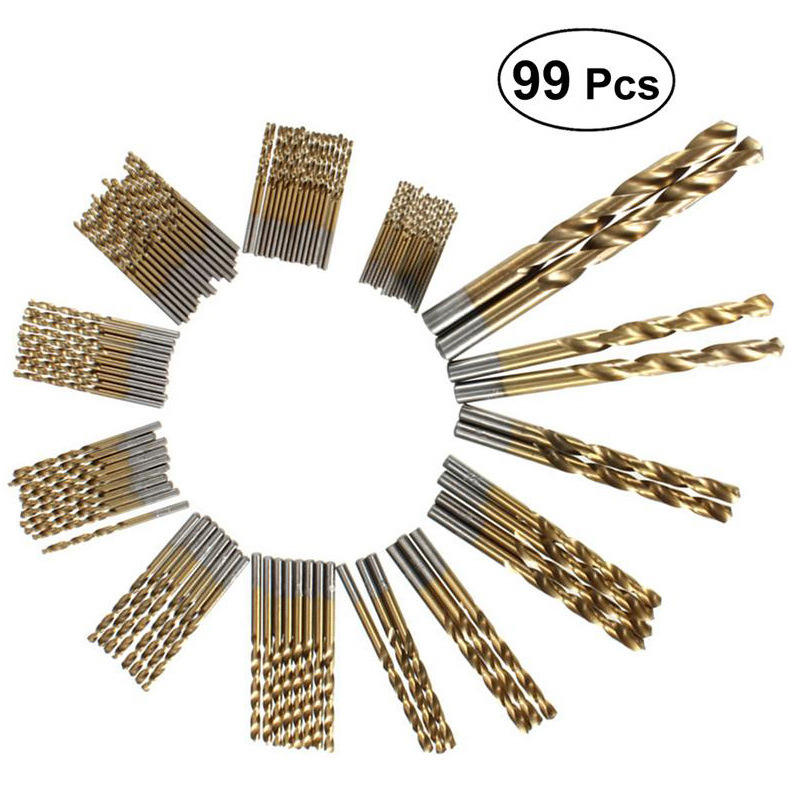99-Piece Titanium-Plated High-Speed Steel Straight Shank Twist Drill Bits Multipurpose Woodworking Wholesale Drilling Bits