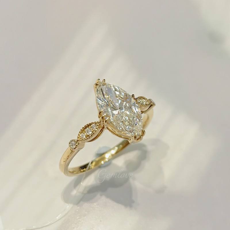 9K-18K Gold 1.53CT Lab-Grown Diamond Ring, 2.307g Custom Pave Setting Wedding/Engagement Ring, Luxury Jewelry