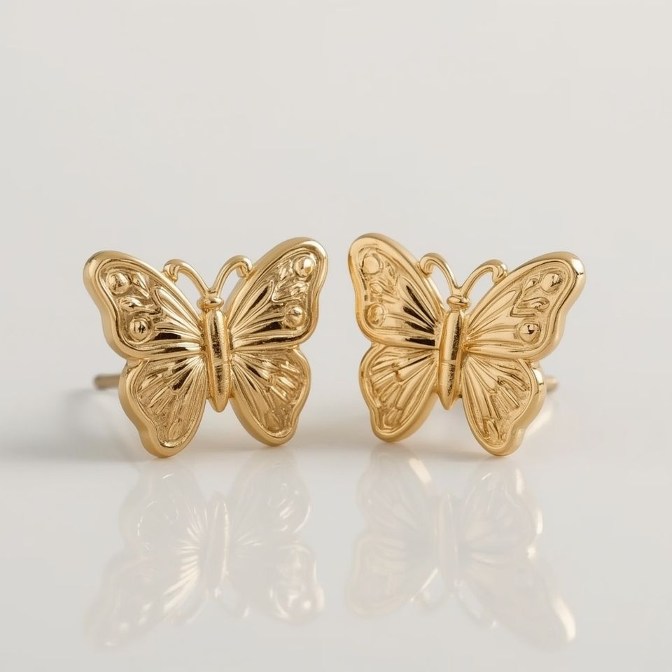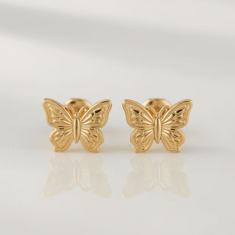 9K Solid Gold Platinum Butterfly Stud Earrings Trendy Lightweight Everyday Minimal Fine Jewelry OEM/ODM Customizable