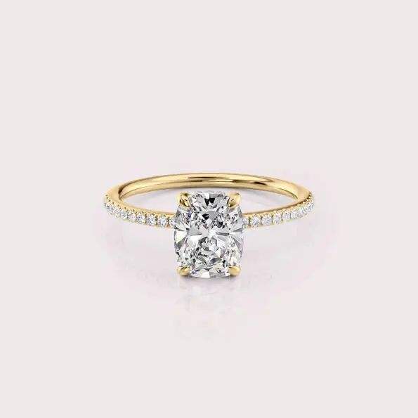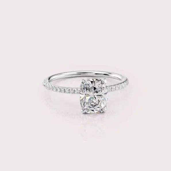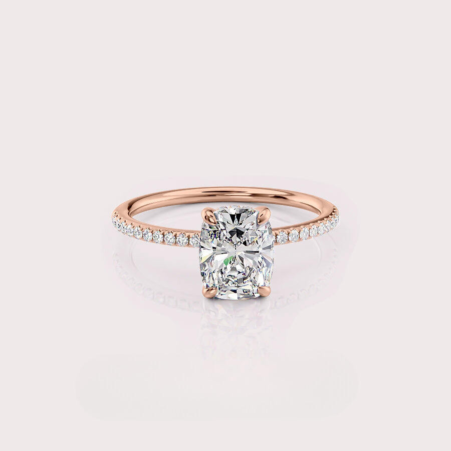 9K White / Rose / Yellow Gold Cushion Cut Lab Grown Diamond Engagement Ring with Pave Band